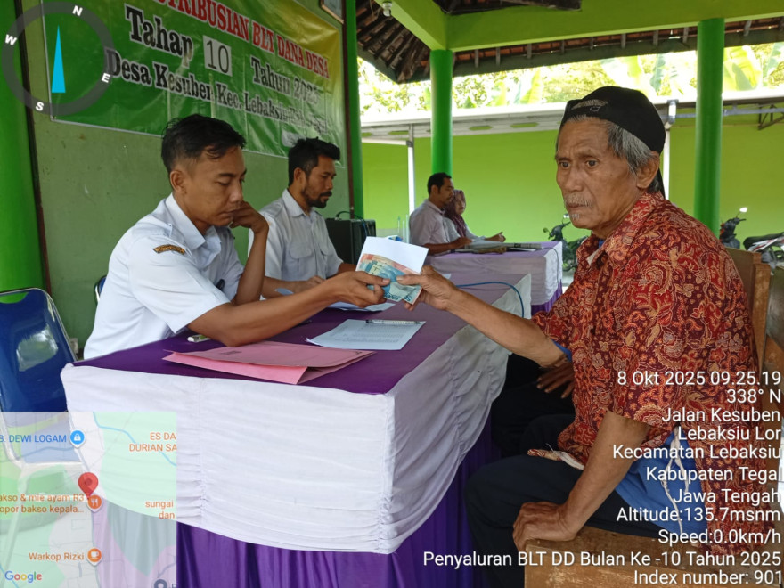 Pada hari Rabu, 8 Desember 2025 Desa Kesuben menyalurkan Bantuan Langsung Tunai (BLT) yang bersumber dari Dana Desa Tahun 2025. Jumlah penerima manfaat sebanyak 57 orang dari 12 RW. Acara ini juga dihadiri oleh Kasi Pemerintahan Desa Kecamatan Lebaksiu yaitu Ibu Patriawati Narendra, S.KM., M.KM dan juga dihadiri oleh Pendamping Desa dari Kecamatan Lebaksiu.